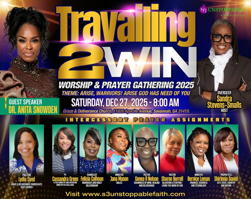 'Travailing 2 WIN,' a sacred gathering of women united in worship and fervent prayer. We come together to travail before God, expecting miracles, signs, and wonders to manifest. As we set the atmosphere in this divine assembly, we anticipate the birthing of breakthroughs and blessings that will carry us throughout the year.